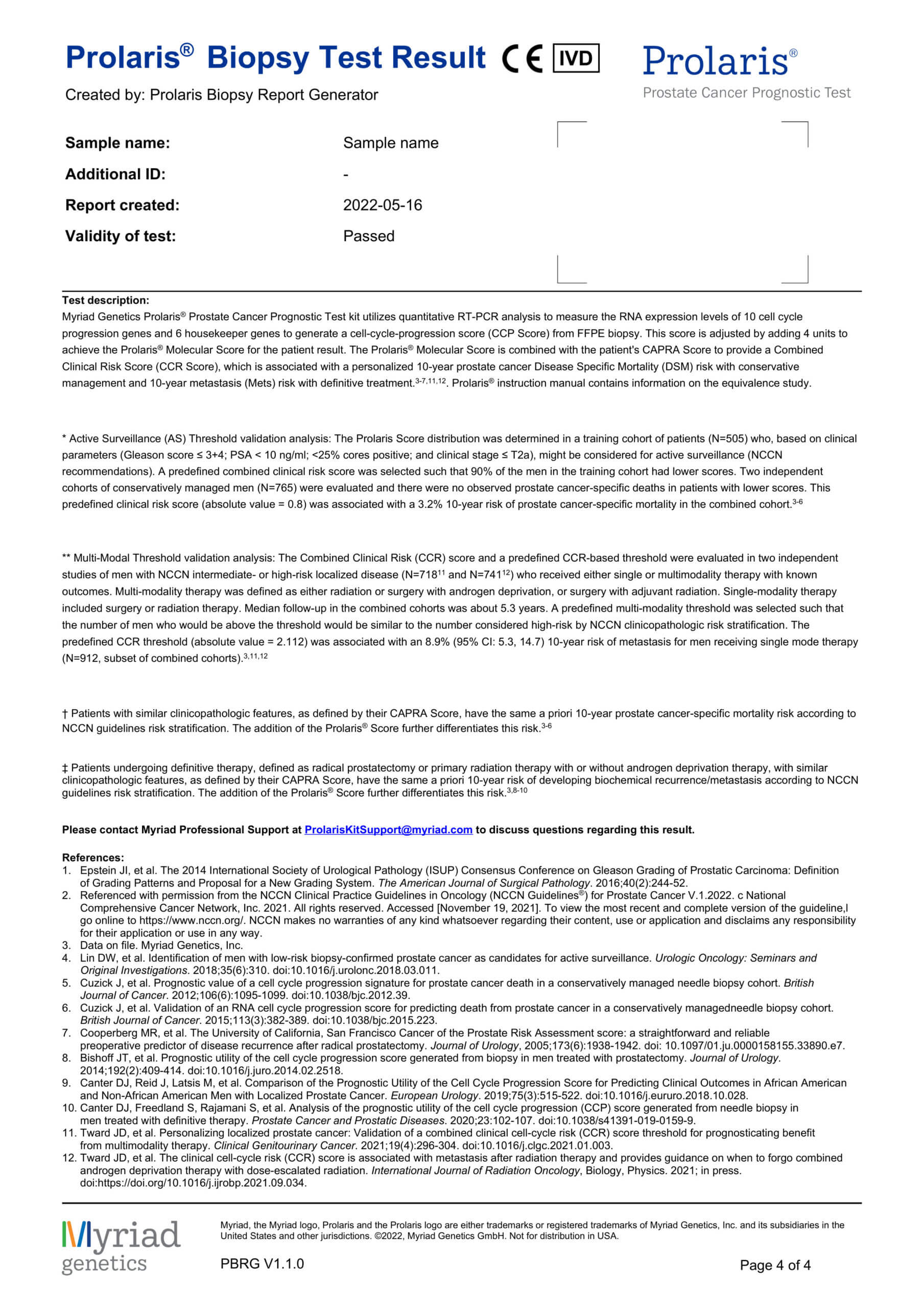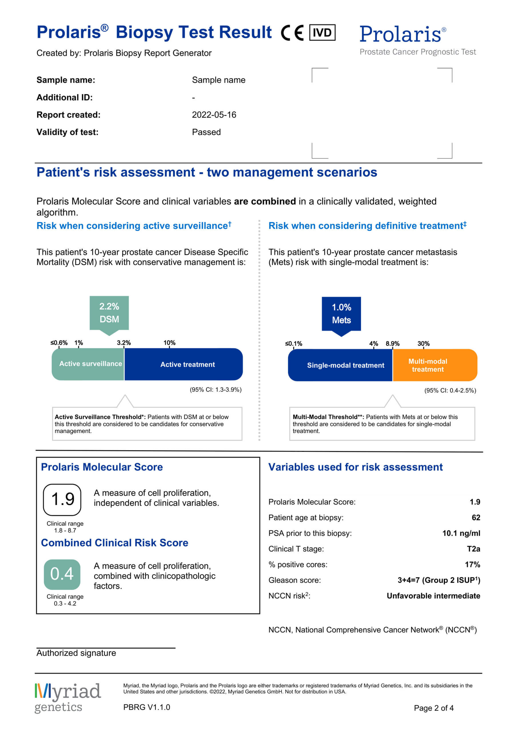 Prolaris® is the only test with validated thresholds for active surveillance2 and multimodal treatment in untreated patients3,4. Assess risk for any patient in any NCCN risk group.2